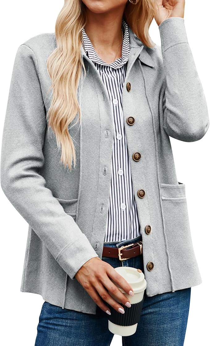 Women Casual Cardigan Knit Button Down Shirts Long Sleeve Shacket Jacket with Pockets