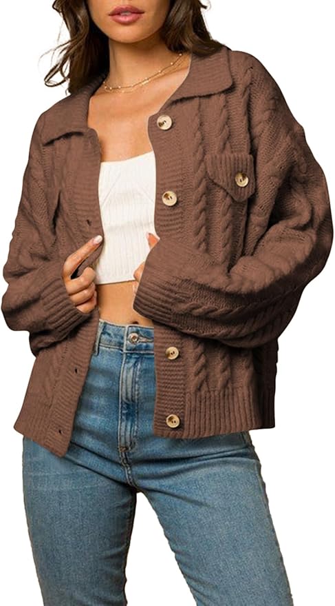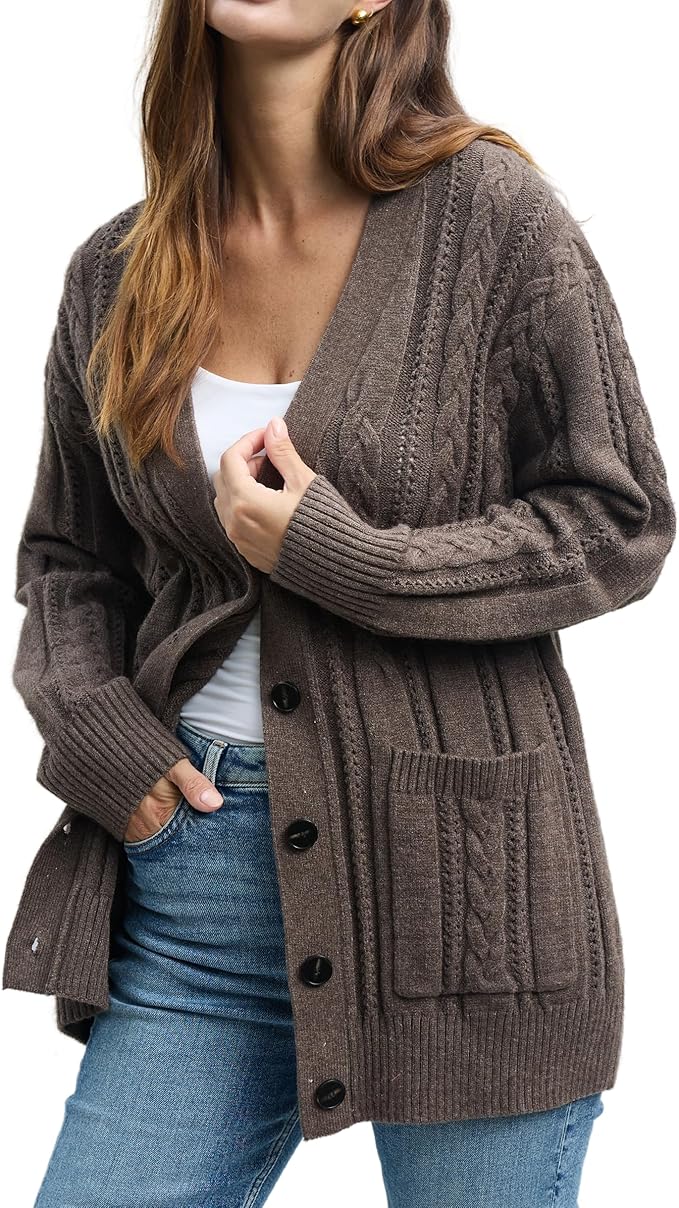 Cable Knit Cardigan 2024 Fall Oversized V Neck Cardigan for Women, Flatters for All Body Types