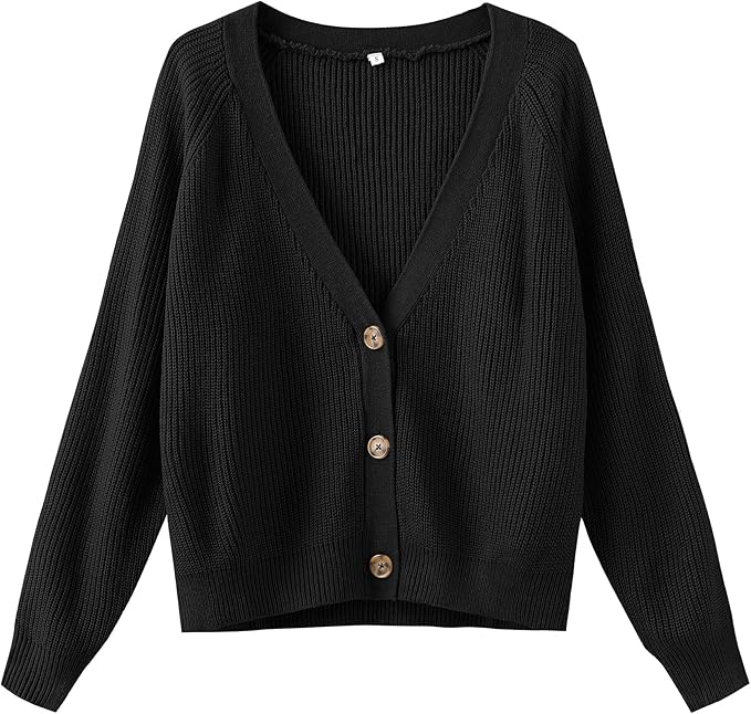 Women's Chunky Knit Open Front Sweater Long Sleeve Button Loose Short Cardigan Outerwear Coats