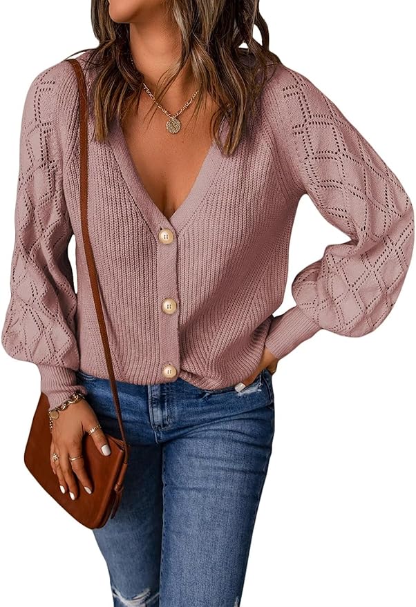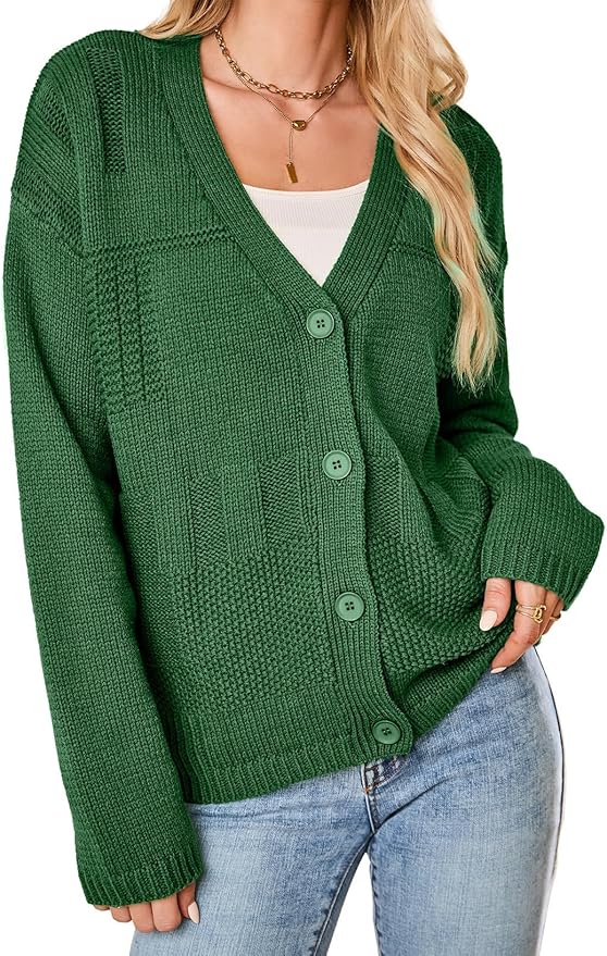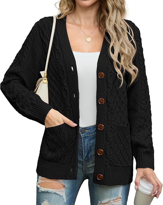 Cardigan for Women V Neck Open Front Button Down Long Sleeve Cable Knit Sweaters Tops