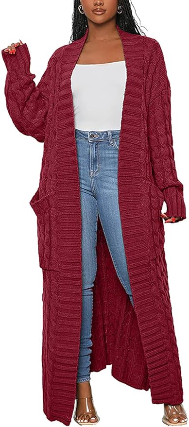 Long Cable Knit Cardigans for Women Chunky Open Front Maxi Sweater Coat Loose Dual Pocket Winter Outwear