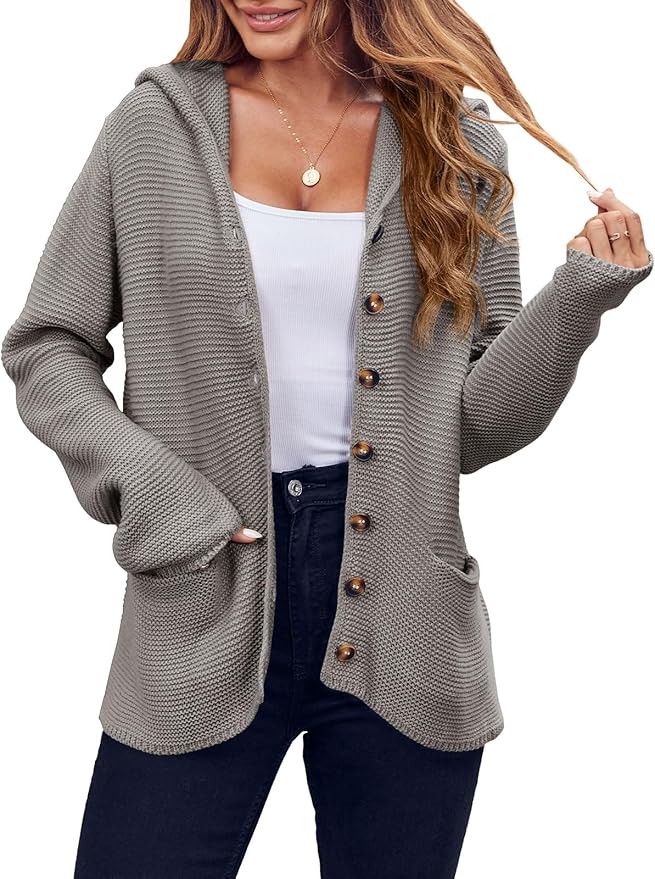 Womens Cardigan Sweater Button Down Long Sleeve Chunky Soft Knit Sweater Fall Open Front Loose Casual Cardigan Coat