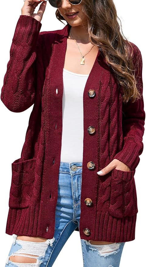 Cardigan Sweaters for Women Open Front Button Down Long Sleeve Pockets Chunky Knit Sweater Tops
