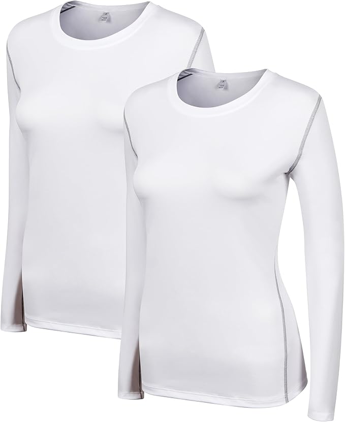 Womens Long Sleeve Shirts Fitted Tops Stretchy Base Layer Tight Basic Thermal Undershirt XS-XXL