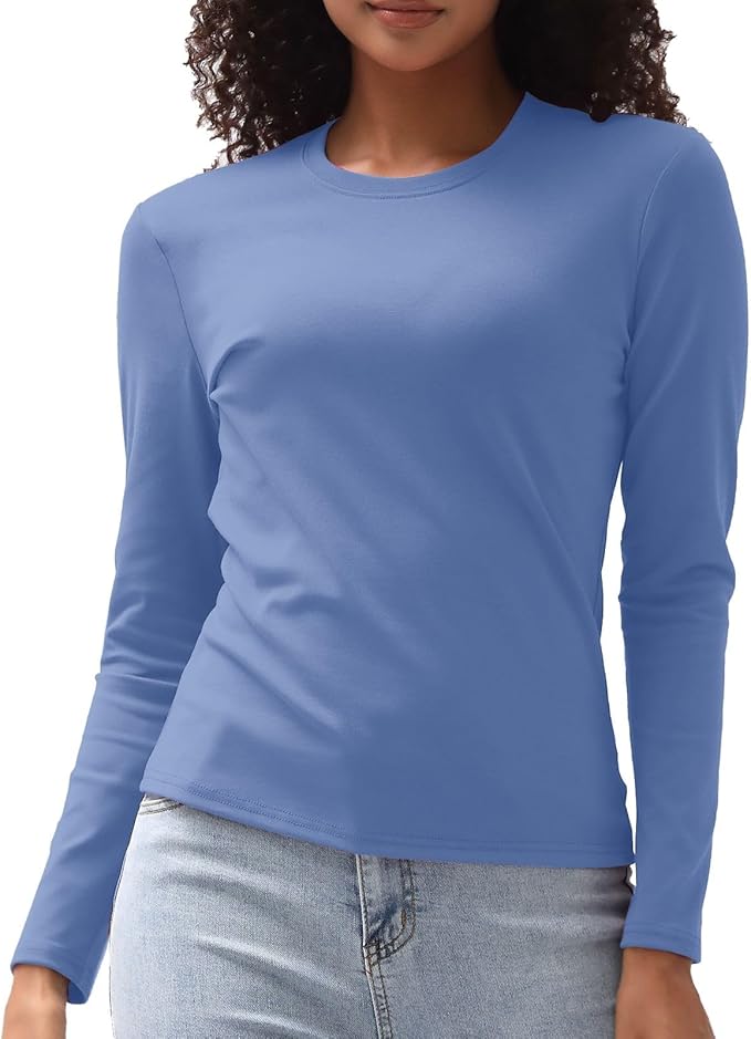 Cotton Long Sleeve Tee Shirts for Women Slim Fit Tshirts Basic Tops Tight Crewneck Layering Undershirts