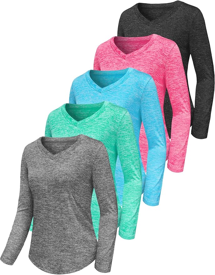 3-5 Pack Womens T Shirts V Neck Long Sleeve Workout Casual Tops Quick Dry Athletic Running UV Sun Protection Hiking