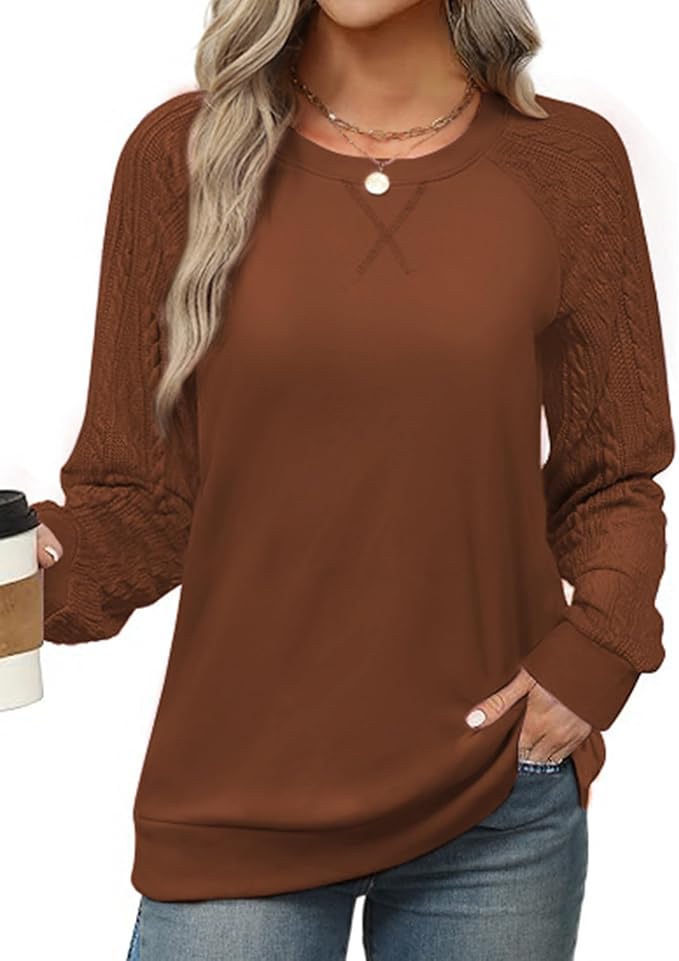 Women's Fall Long Sleeve Shirts Tunic Tops to Wear with Leggings Casual Crewneck Long Sweater Sweatshirts