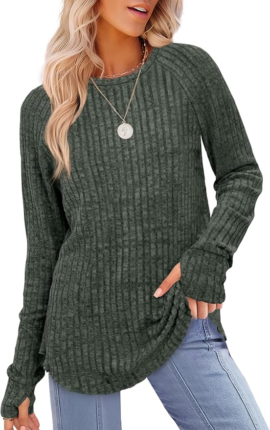 Women's Long Sleeve Top Crewneck Basic Lightweight Fall Shirt with Thumb Hole