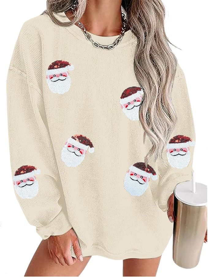 Merry Christmas Sweatshirt Women Christmas Sequin Tops Hoodie Christmas Party Pullover with Pockets