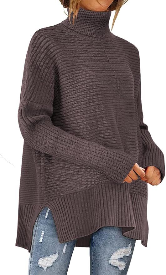 Women's Oversized Turtleneck Sweaters Fall 2024 Dressy Casual Ribbed Knit Button Long Sleeve Pullover Sweater