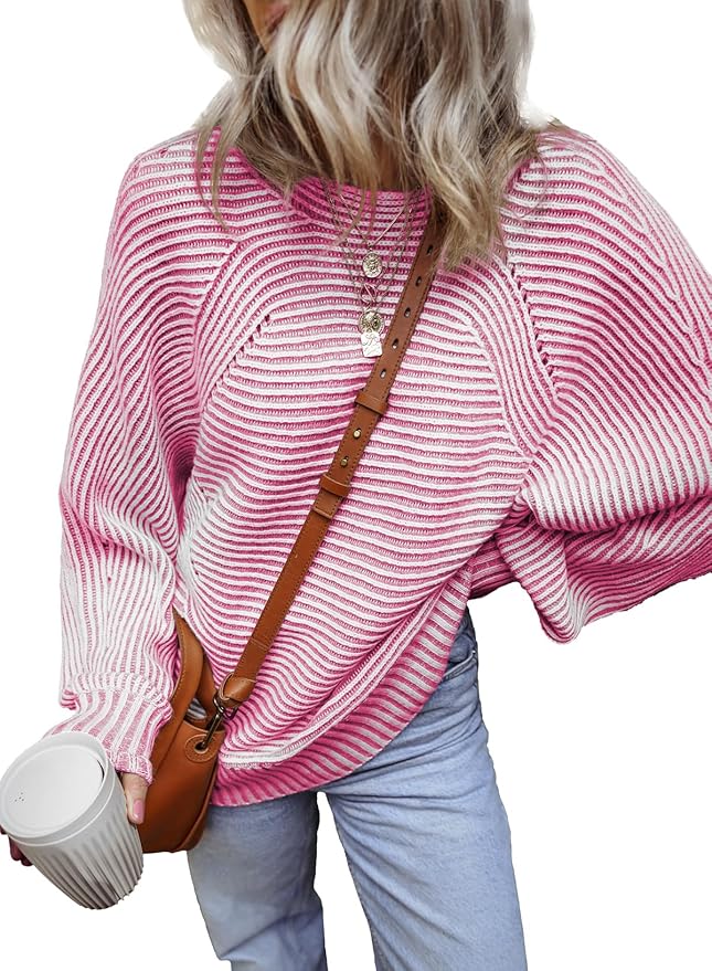 Striped Sweaters for Women Boat Neck Batwing Sleeve Oversized Pullover Sweater Tops Womens Fall Clothes Outfits