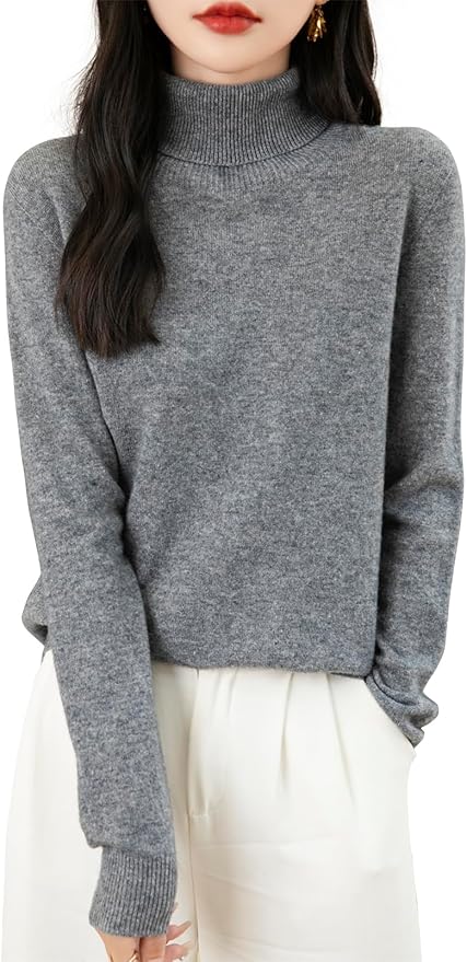 Women's Turtleneck 100% Merino Wool 2024 First-Line Ready to Wear Fall Winter Seamless Knit Pullover Sweater