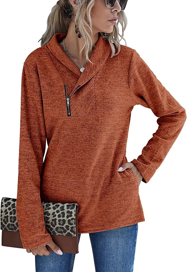 Quarter Zip Sweatshirt for Women Fall Long Sleeve Cowl Neck Top 2024 Fashion Pullover with Pockets