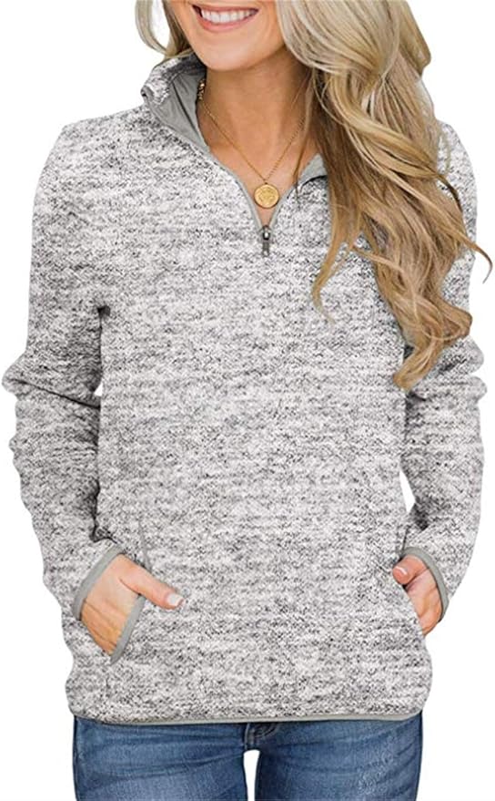 Women's Women Quarter Zip Casual Pullovers Lightweight Fleece Sweatshirts with Pockets
