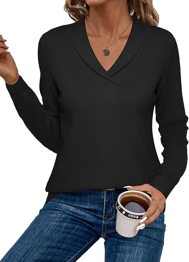 Sweaters for Women Fashion 2024 Fall Long Sleeve Shirts V Neck Collared Knit Pullover Tops Outfits