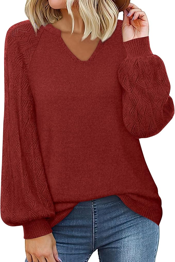 Womens Pullover Sweaters 2024 Casual Long Sleeve V Neck Loose Knit Tops